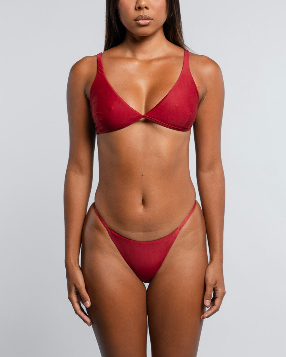 Introducing the microfiber blend - buttery smooth with a silky touch and a subtle glow that catches the sun just right. Shine is all about the details: adjustable straps all over for a custom fit, plus a cheeky cut you can wear high or low.