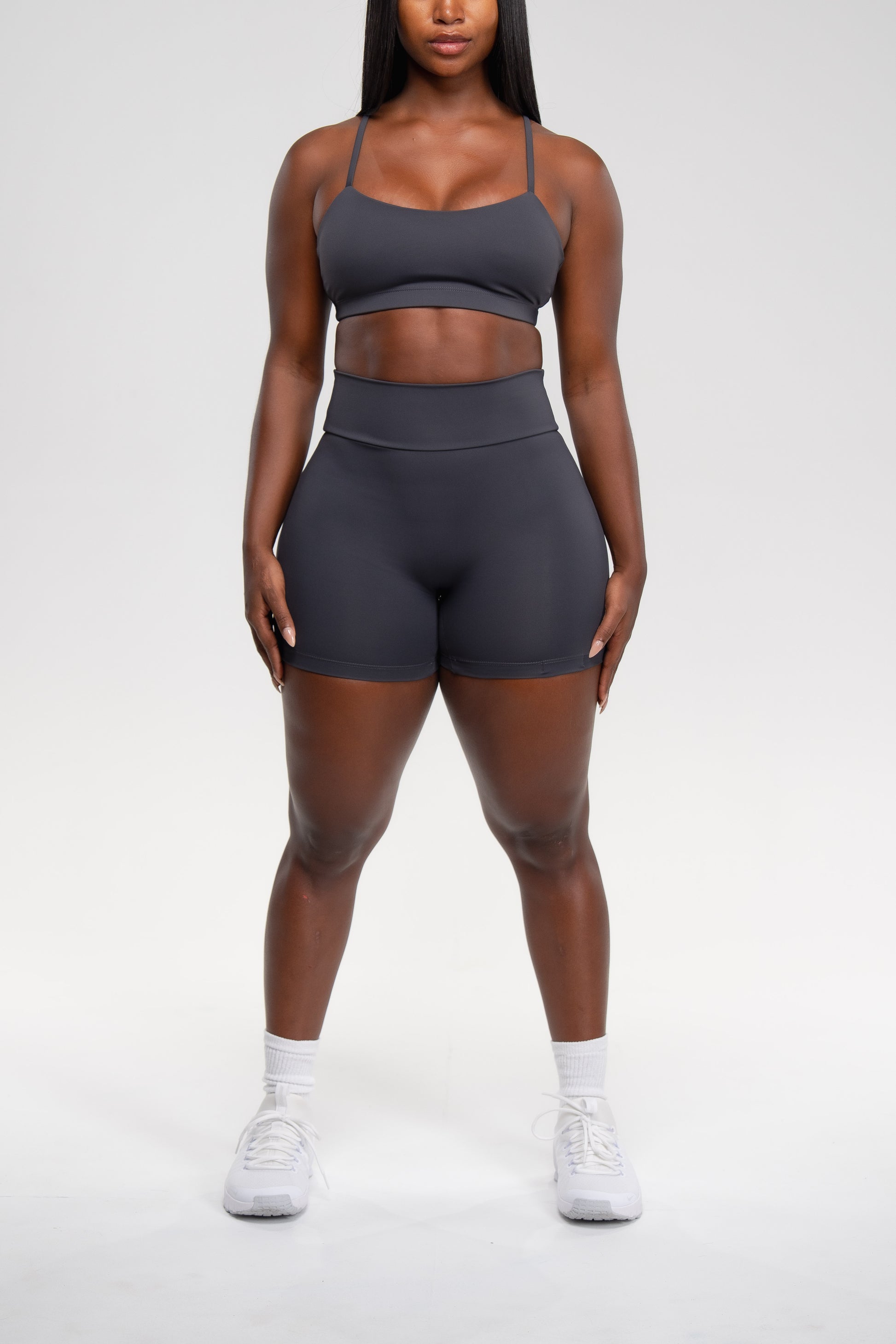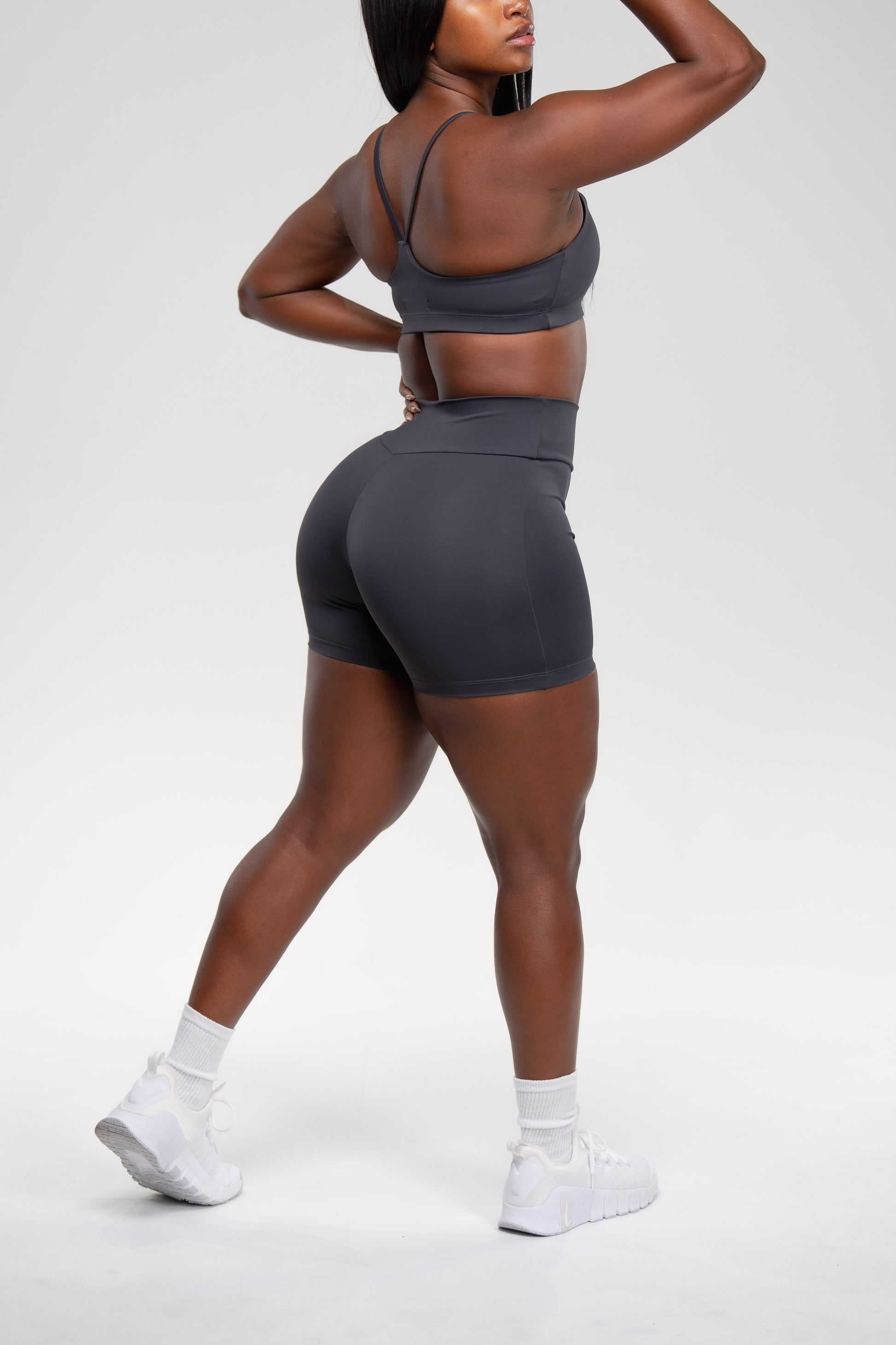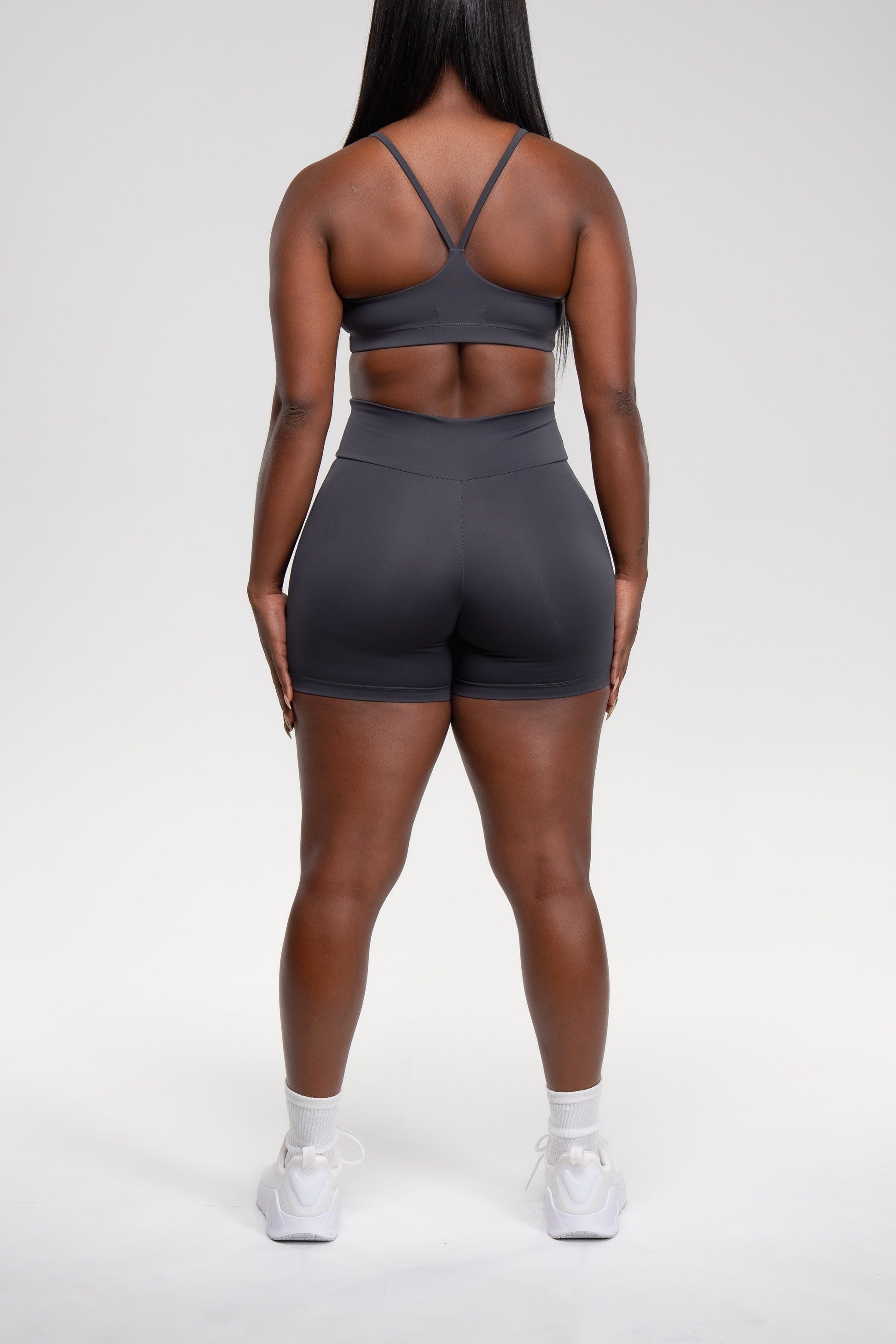 STEEL - FORM in EMANA® STEEL is a deep grey that sharpens any look. FORM debuts a shorts set with a seamless, second skin fit designed for movement: featuring a scoop neck top with thinner straps that meet in a slight V at the back, paired with shorts crafted without front seams for a smooth, streamlined silhouette. Crafted with EMANA® smart fabric, this set feels silky and breathable while working with your body. The Brazilian bioactive technology boosts circulation, helps improve skin elasticity, and over time can reduce the appearance of cellulite.